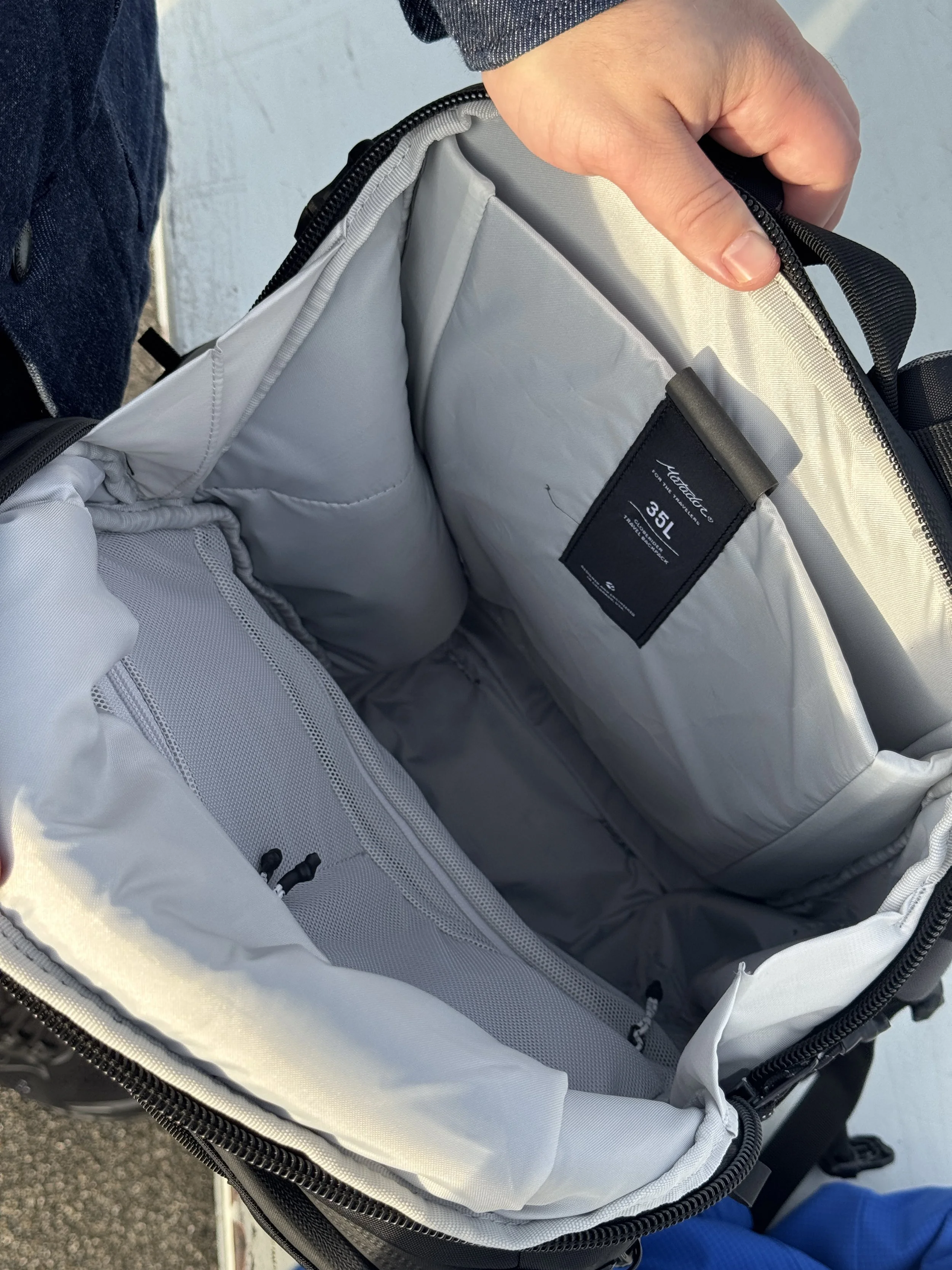 Material choices are dialed in. The stretch mesh on both the front pocket and inside the admin panel feels premium—much better than standard mesh, smooth and flexible. Every buckle is confidence-inspiring. I love the overall feel: dense and well-stitched, a bag that invites adventure rather than dainty handling. The ingenious compression system also meant that even when the bag wasn’t packed to the gills, I could still maintain a clean aesthetic and manage the floppiness.