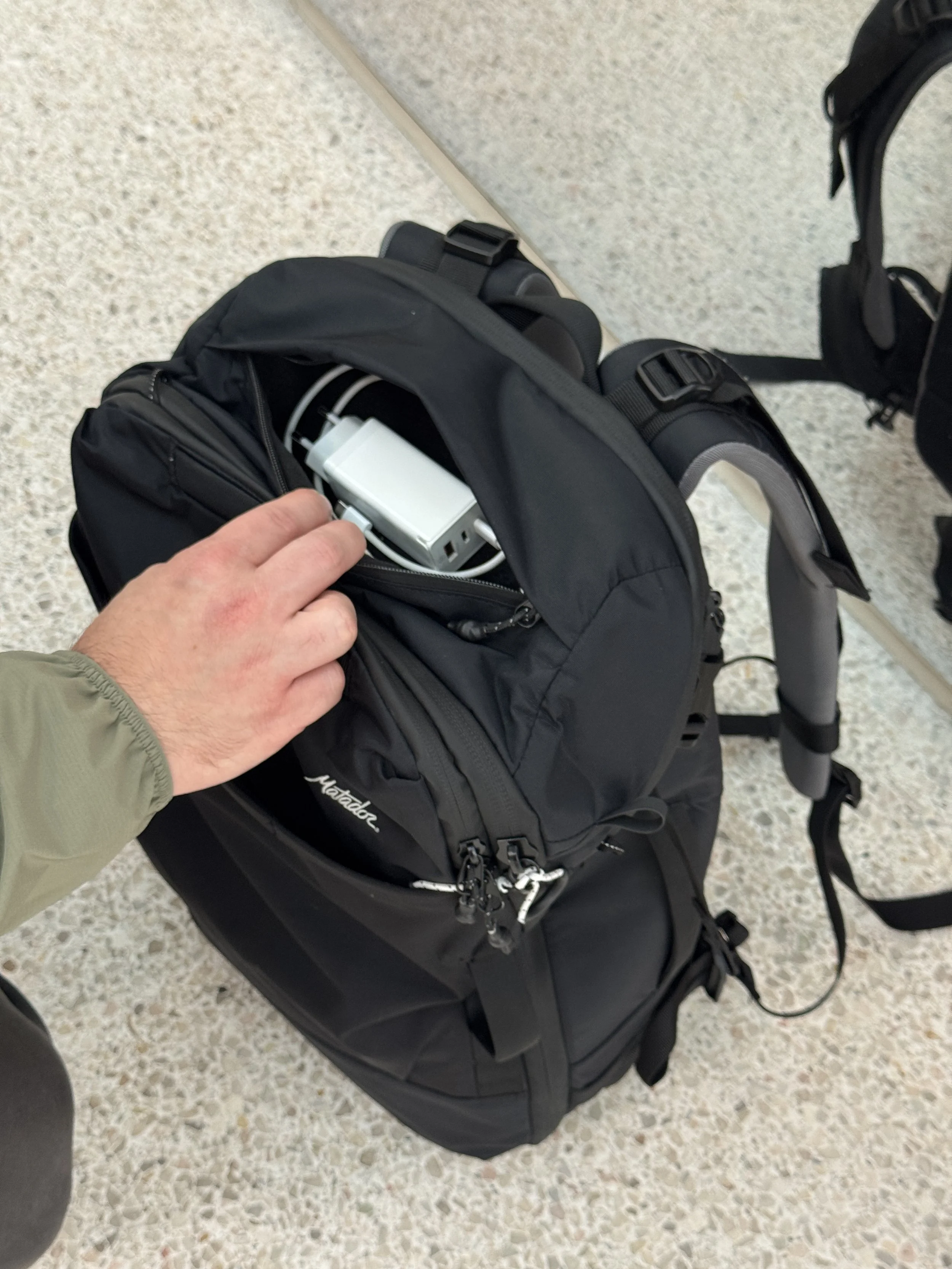 The top fleece-lined pocket is ideal for keeping sunnies, AirPods, or your phone scratch-free through security gauntlets. Personally I enjoyed having my charger there for quick access.